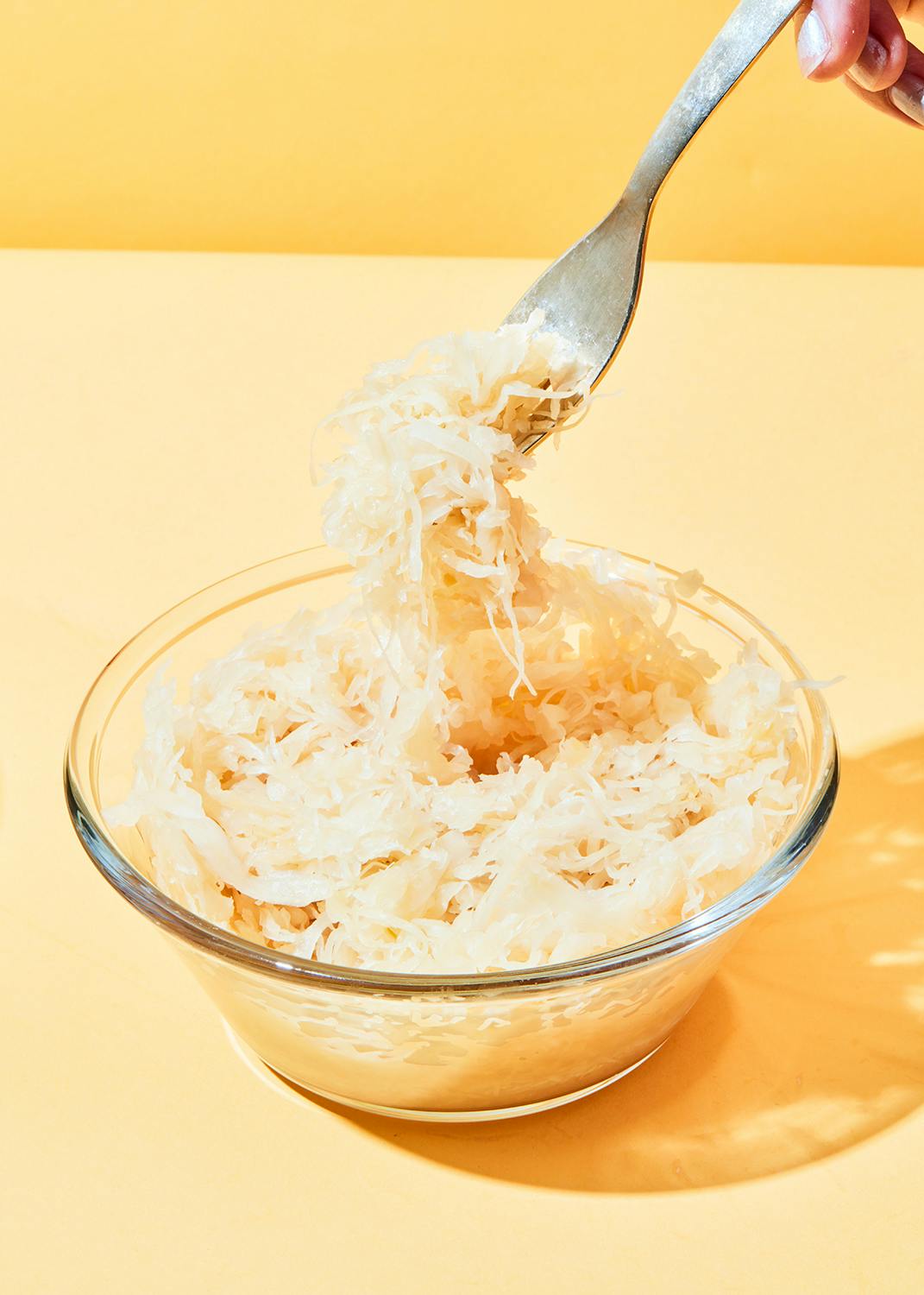 Damit Sauerkraut entsteht, muss Weißkohl durch Milchsäuregärung (Fermentation) konserviert werden. Diese Technik, Gemüse haltbar zu machen, wurde schon im antiken Griechenland und im Römischen Reich praktiziert. Vielleicht kennst Du auch die koreanische Sauerkraut Variante: Kimchi. Der gesäuerte Chinakohl entstand bereits im 7. Jahrhundert. Bevor die Methode der Konservierung etabliert war, wurde Sauerkraut vor allem im Winter in Deutschland, Polen und den Niederlanden verspeist. In den USA wurden “die Deutschen” deswegen sogar zu Zeiten des Ersten Weltkriegs stereotypisch als “Krauts” bezeichnet. Kommen wir aber nun detailliert zur Herstellung: Frischer Kohl wird fein geschnitten und mit Salz in einen Behälter (Topf) gegeben. Durch das Salz wird dem Gemüse Flüssigkeit entzogen und der Saft wird konserviert. Dann wird der Weißkohl mit einem “Krautstampfer” bearbeitet und Milchsäurebakterien werden hinzugegeben. Unser Sauerkraut ist zudem pasteurisiert. Das bedeutet, dass es zusätzlich erhitzt wird. Dadurch werden Bakterien abgetötet und die säuerliche Leckerei ist noch länger haltbar gemacht.