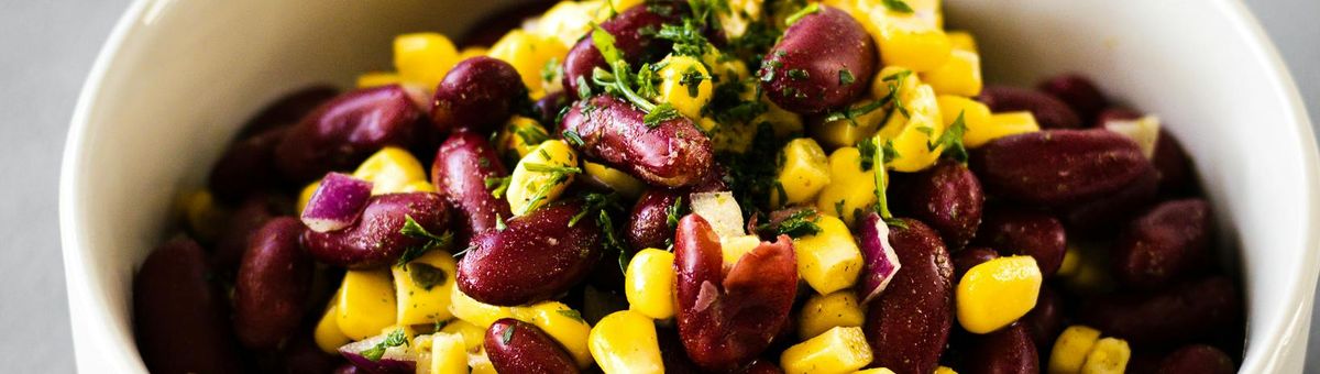 Add the beans, corn and onion and mix everything well. If you like, you can add a few fresh herbs.