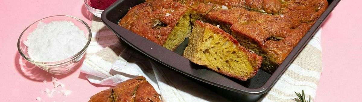 Gib’s zu: Irgendwann hast Du einmal ganz motiviert pinke Pasta selbst gemacht. Seitdem steht das Rote-Bete-Pulver bei Dir zu Hause und wird nicht benutzt. Das ändern wir jetzt, denn Du kannst Rote Bete easy in Rezepte integrieren! Zum Beispiel in herrlich rosafarbene Focaccia.