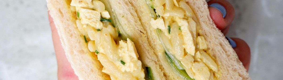 Inspiriert vom Japanese Egg Sandwich ist diese vegane Kreation, die auf Tofu und Orzo basiert. Orzo sind kleine, reisförmige Nudeln, auch bekannt als Kritharaki oder Risoni. In unserem Shop findest Du sie auch aus Linsen- oder Kichererbsenmehl – worth a try!