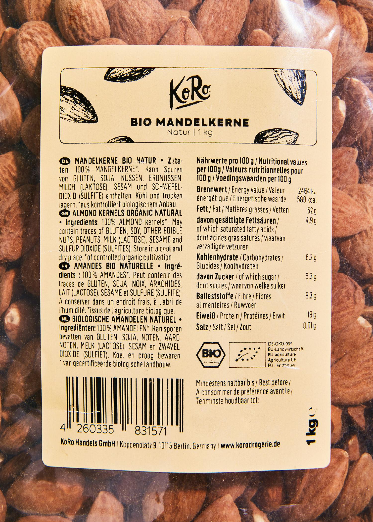| Amandes bio 1 kg | Amandes émondées 1 kg | Poudre d'amandes blanches 1 kg | Poudre d'amandes complètes 1 kg | Amandes décortiquées Premium 1 kg | |