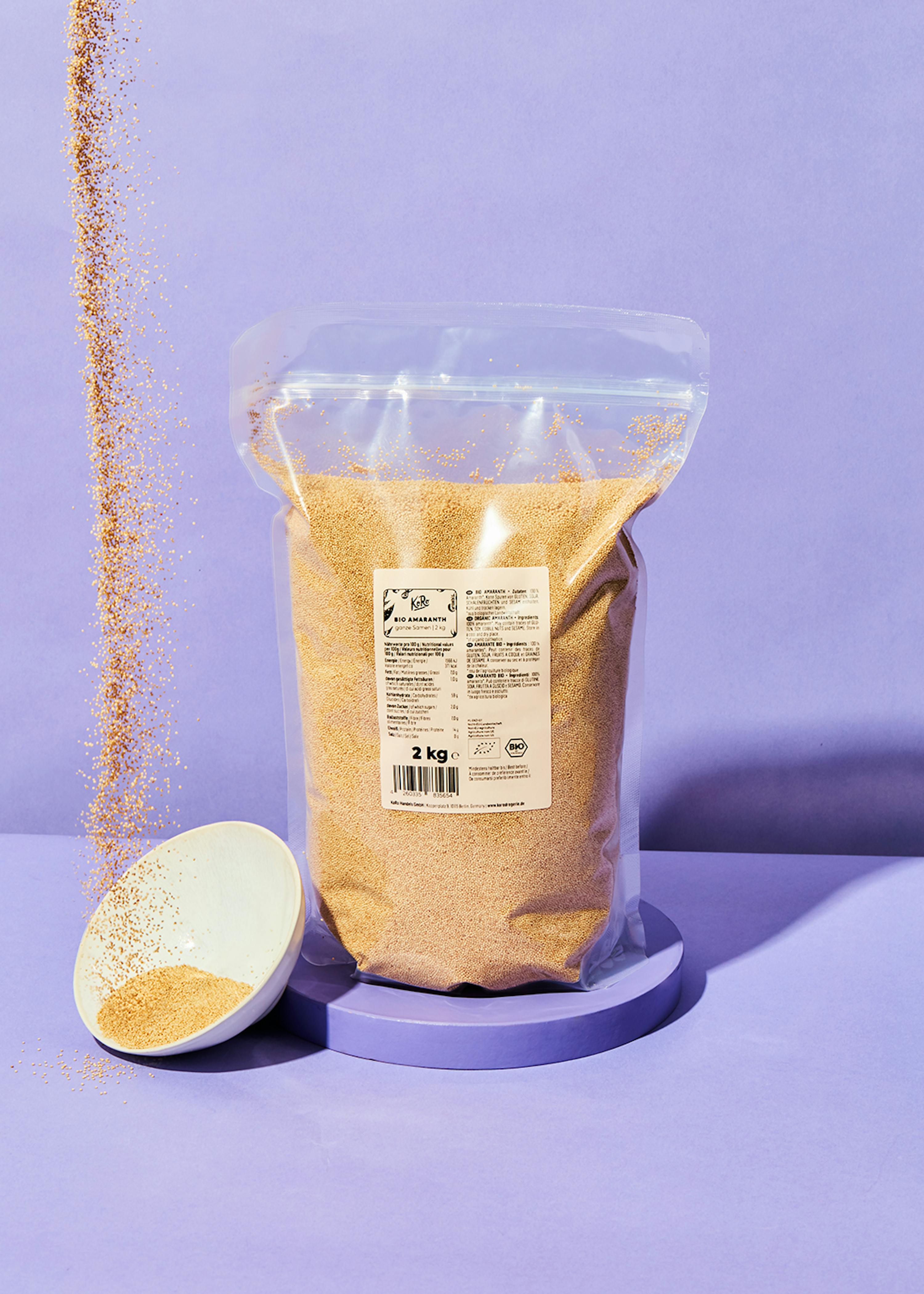 Vous voulez changer du riz et des pâtes ? Dans ce cas, notre amarante est incontournable, car ces délicieux grains peuvent être utilisés en combinaison avec des plats salés et sucrés. Si 700 g d'amarante ne vous suffisent pas, vous pouvez également acheter directement les grains croquants dans un lot de 6 x 700 g.