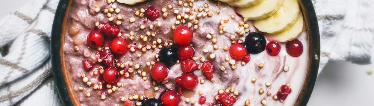 Couvrir avec du yaourt, plus de baies, de la banane et du quinoa soufflé et déguster !