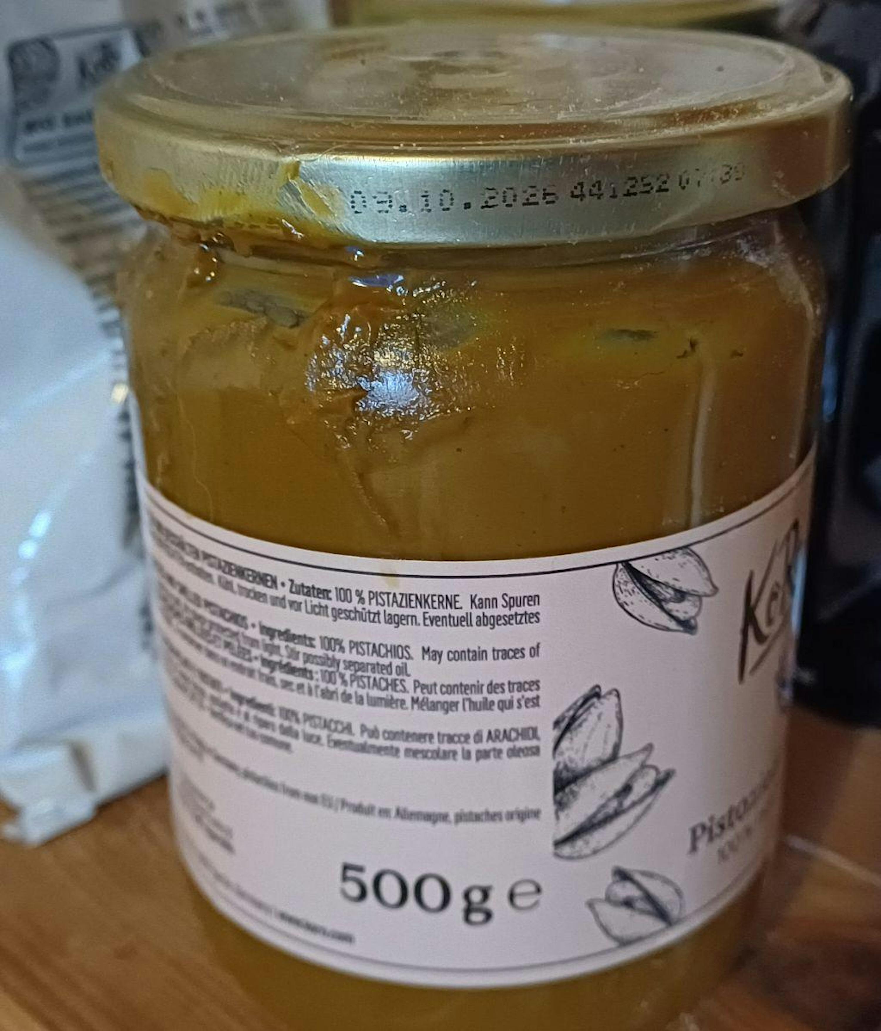 | Dénomination de vente | Purée de pistaches à base de pistaches grillées et décortiquées |