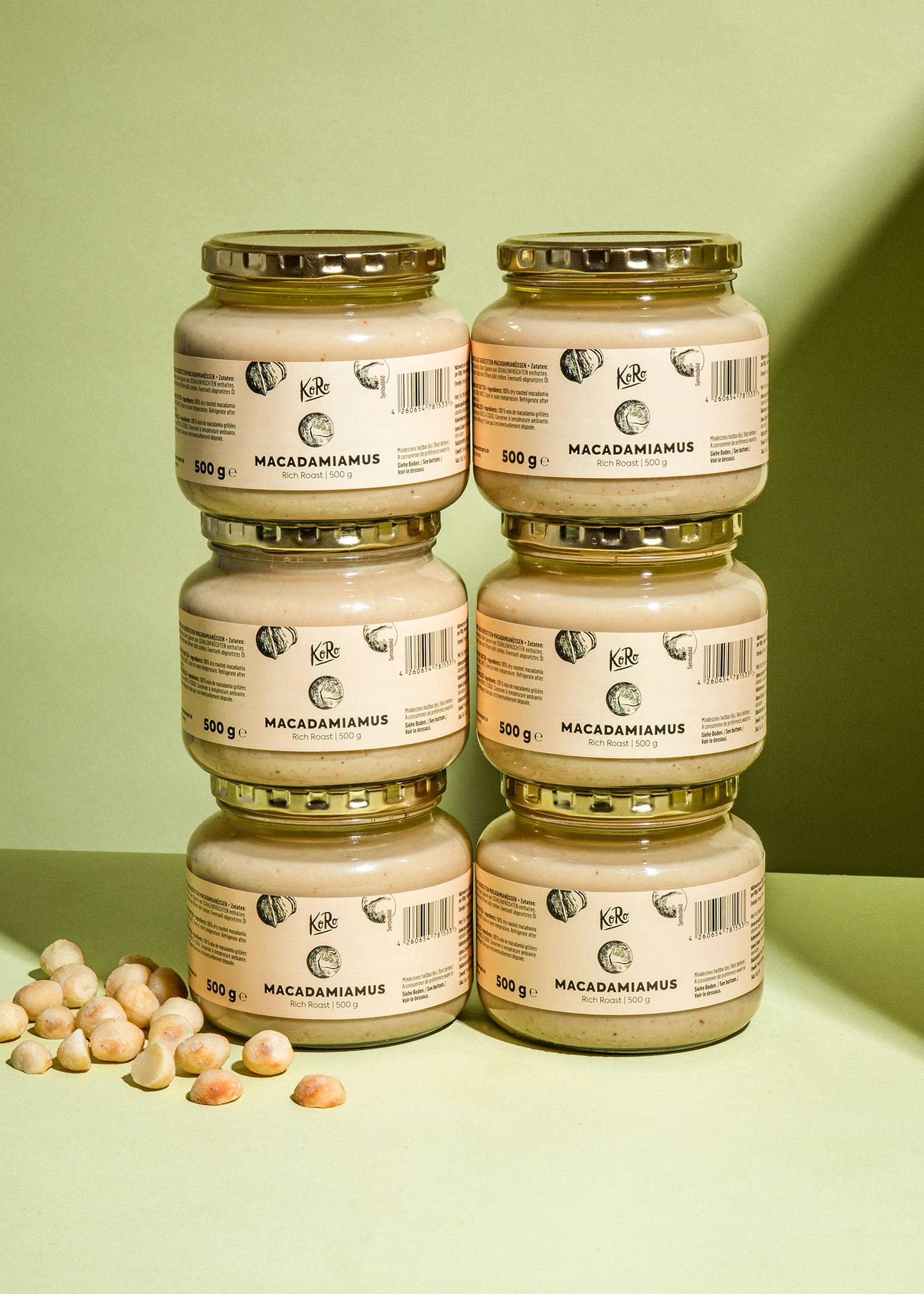 Noi amiamo frullare frutta secca di prima qualità e ottenere crema 100% frutta secca dal sapore avvolgente e naturale. Crema di nocciole, di anacardi, di pistacchi: le abbiamo veramente di tutti i tipi! Naturalmente, la regina assoluta delle noci non dovrebbe mancare. Abbiamo preparato il nostro equipaggiamento da safari e siamo in viaggio verso il Sudafrica. Perché? Per trovare le migliori noci di macadamia! La nostra crema di noci di macadamia è una ricca purea di frutta secca delicatamente tostata. Le noci vengono tostate dopo la raccolta in modo che possano sviluppare tutto il loro aroma. Inoltre, sono lavorate e trasformate in morbida purea direttamente sul posto. Anche tu hai già l'acquolina in bocca?