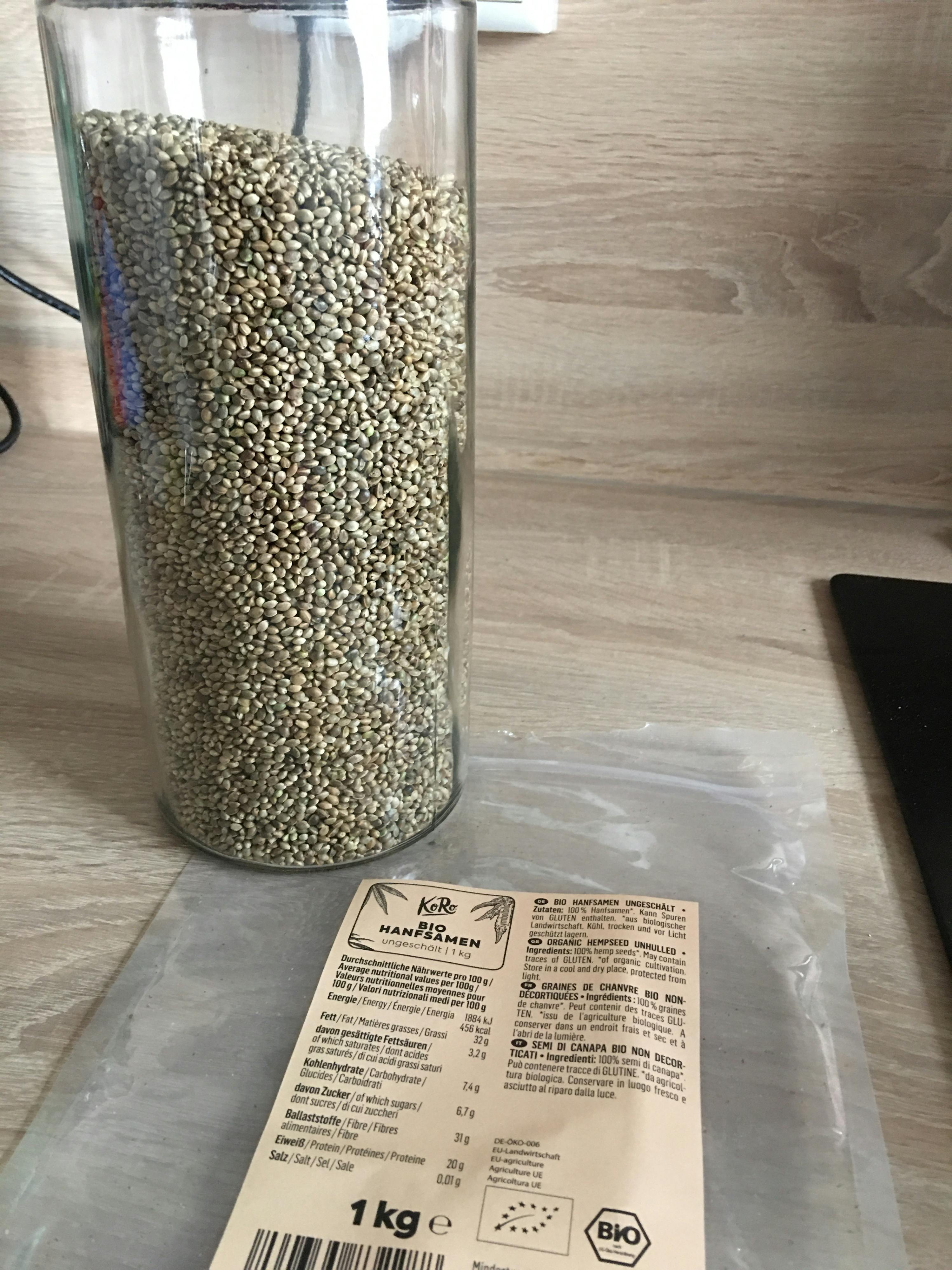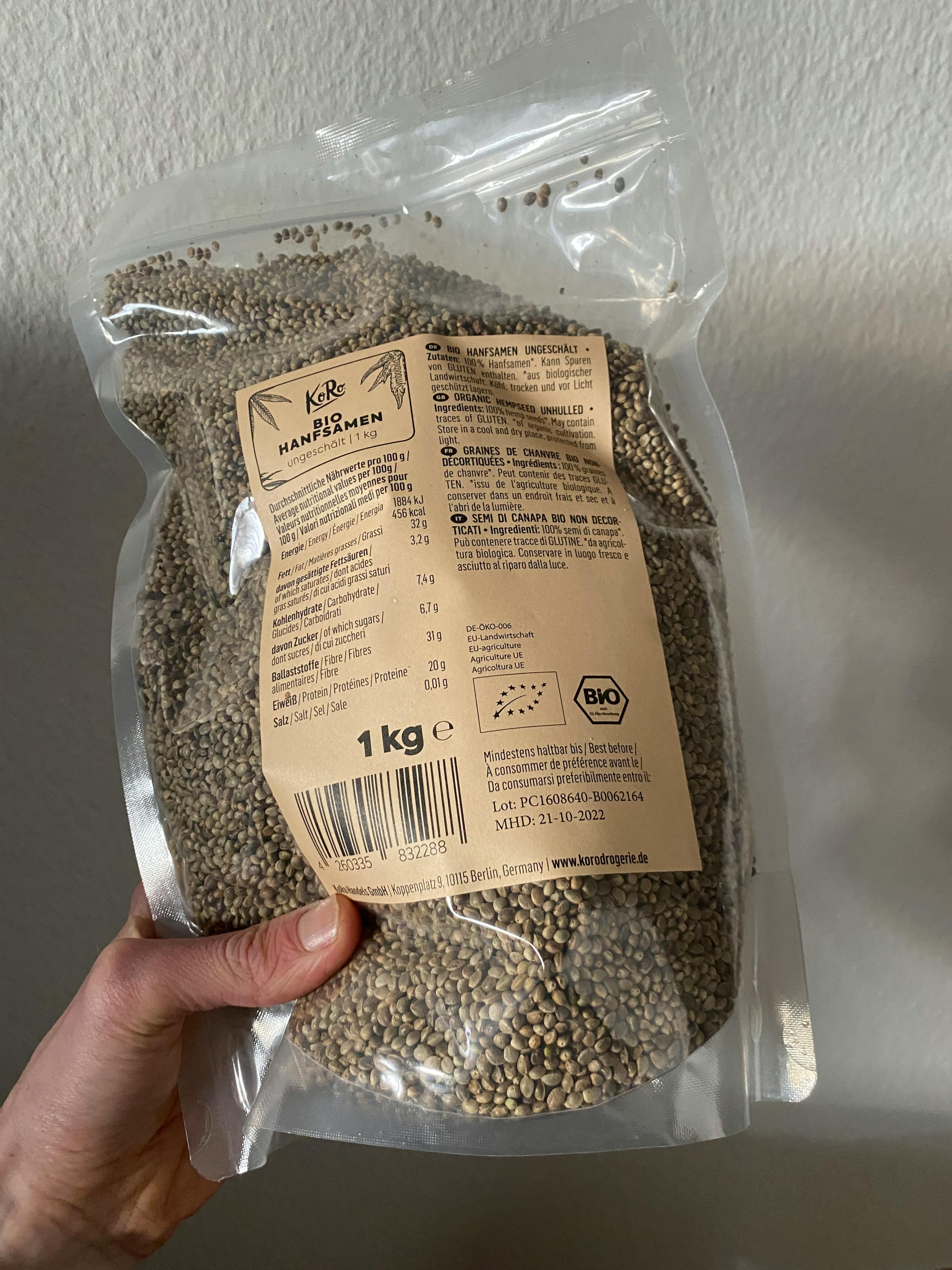 Zum Glück gibt es bei KoRo noch ungeschälten Hanfsamen